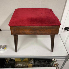 Midcentury Vintage Sewing Stool Ottoman Storage Box Vinyl With Wood Legs Ebay